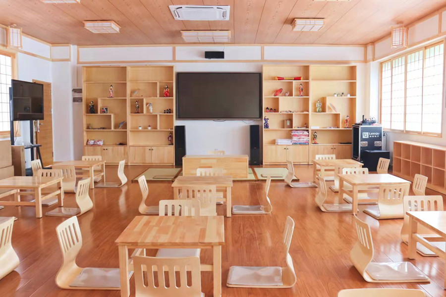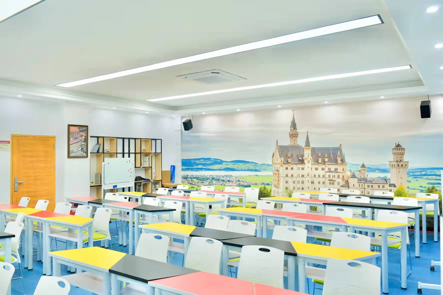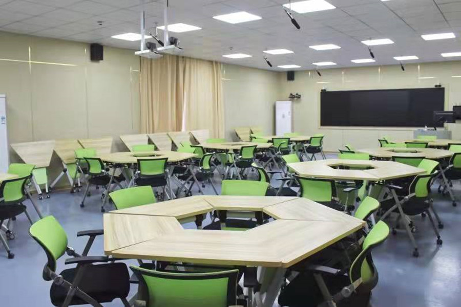 外国语学院有多媒体教室 48间、语音实验室8间、口笔译实训室1间、商务外语沟通情景室1间、日语文化田野室1间、德语文化情景室1间、微格教学实训室1间、多功能录播室1间,还与其他学院共享跨境电商实训室、新媒体实训室等。为保证学生能进行在线外语练习,外国语学院购买了“传神翻译实训系统”“科大讯飞Fif口语训练系统”,同时使用“外研社U校园”“外教社WE learn 随行课堂”“MyET日语课程”“Speexx德语训练平台”等多个线上外语资源和能力训练平台,辅助外语技能训练。