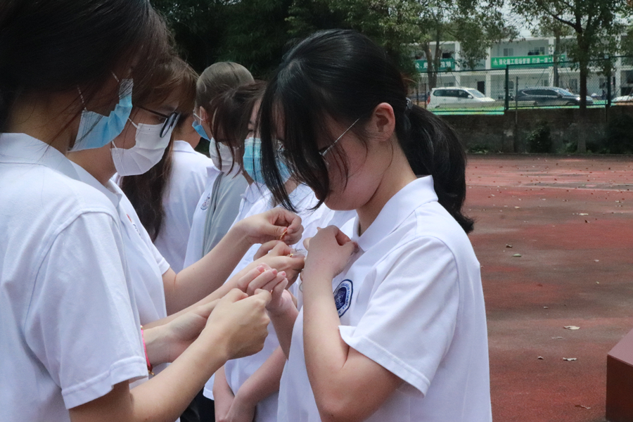 老团员帮新团员佩戴团徽(二)
